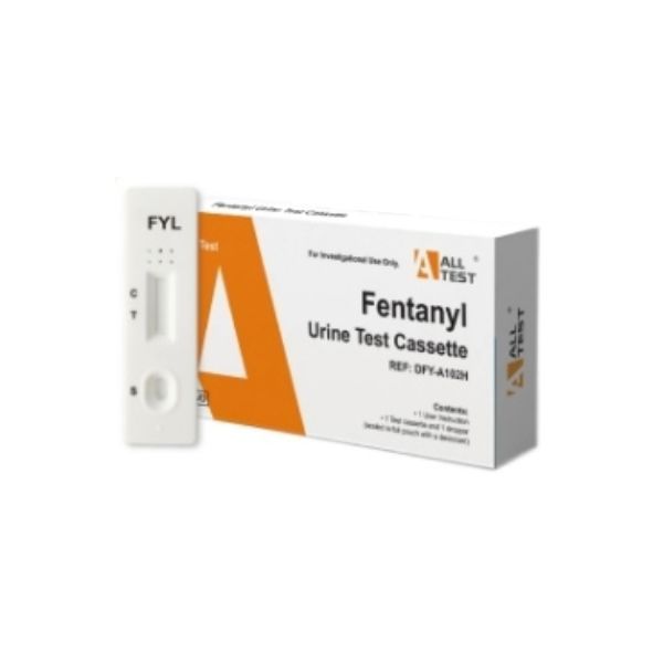 The Fentanyl Drug Screen Dipstick Test is a one-step, lateral flow chromatographic immunoassay for the qualitative detection of various drugs in human urine at specified concentrations. The Fentanyl Drug Screen Dipstick Test is an in vitro screening device and is intended for professional use only.